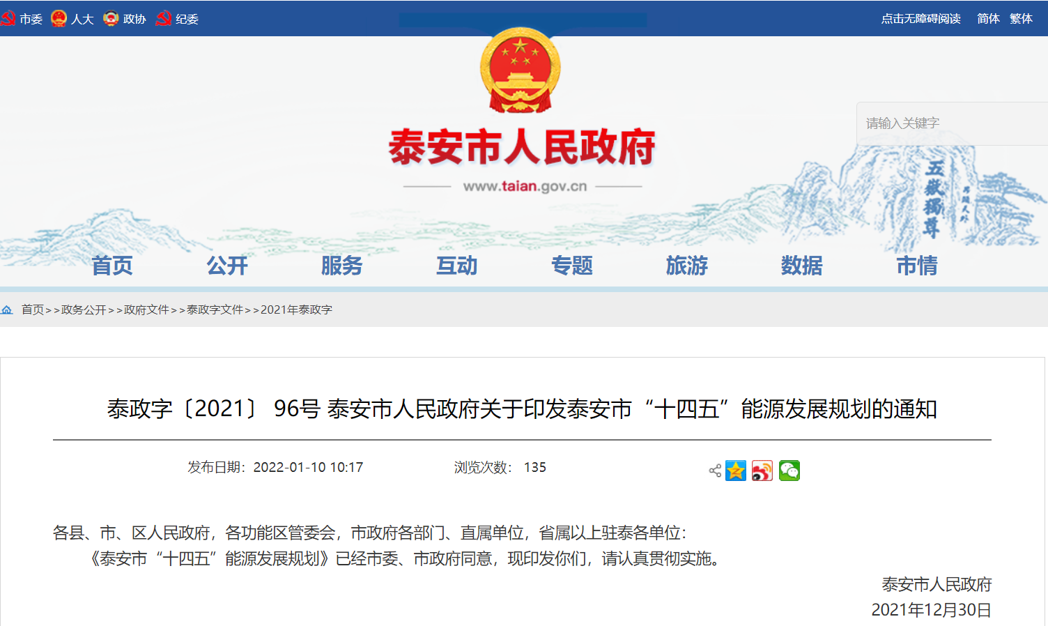文章來源:地大熱能 發布作者:山東省泰安市人民政府 發表時間:2022-01-12 09:06:56瀏覽次數:4023