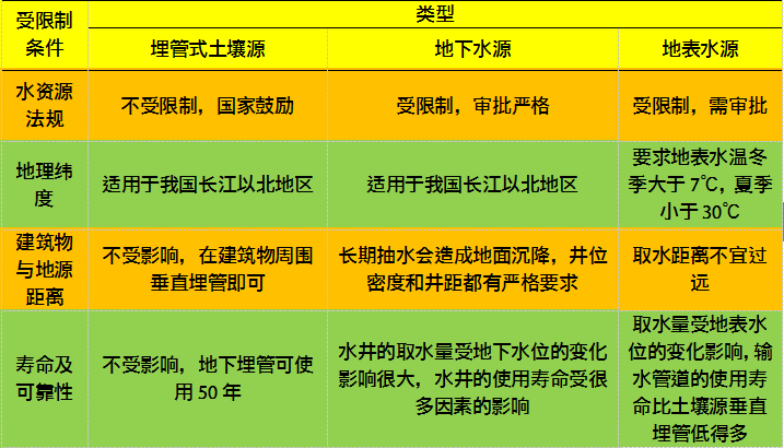 地大熱能專家介紹:地源熱泵空調系統的設計,主要包括兩大部分:一是建筑物內的水環路空調系統的設計;二是地源熱泵空調系統的地下部分的設計,即地下耦合熱泵系統的地下熱交換器、地表水熱泵系統的地表水熱交換器,地下水熱泵系統的水井系統設計。下面我們對三種地源熱泵系統形式進行對比分析,如表1所示。