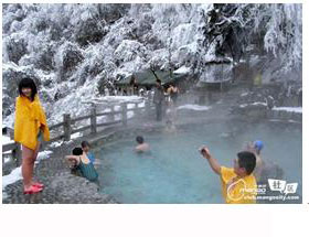 四川理塘毛埡溫泉風景溫泉周圍的玄武巖石長期受熱水和硫磺浸蝕,形成了不同形狀的許多小池子,可供沐浴的室內和露天溫泉不計其數,花上5-15元錢就可以盡情享受。